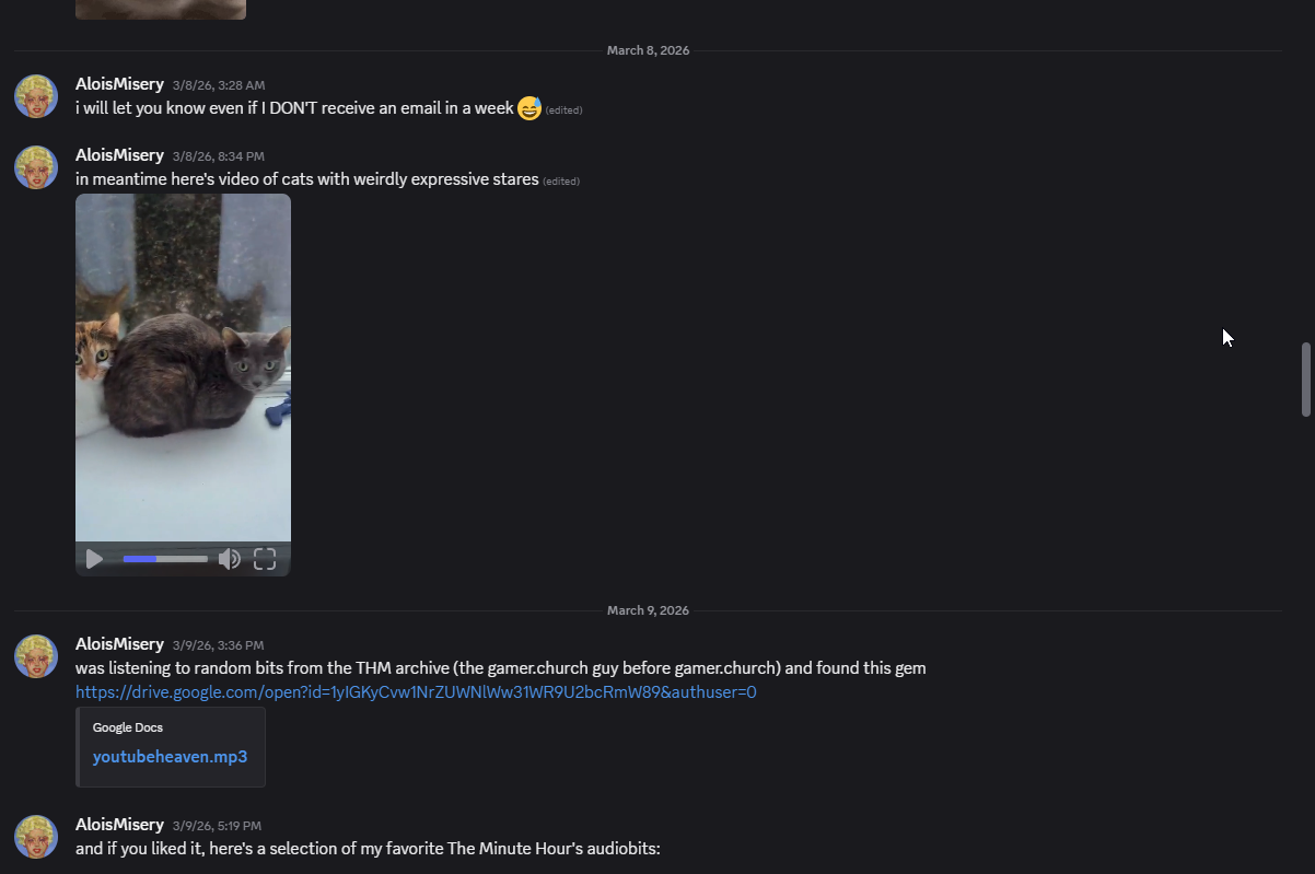 CONTENT WARNING: TONE-DEAF SINGING <https://put. icu/s/amifj4pk. mp4> |
